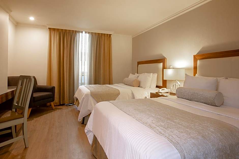 Two Double Beds is 258 square feet and includes 2 double beds 131-150 width plus desk and cable tv.